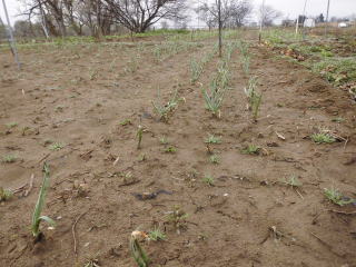 越冬後のタマネギ。これから土寄せし追肥して行きます。