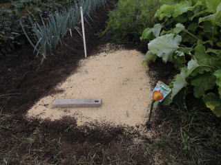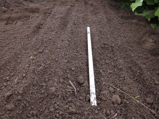 丸棒でスジを漬け、ここにスジ蒔きします。2015.08.24 8:41 撮影
