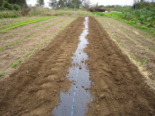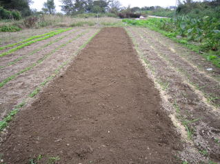 @良く耕した地面に尿素、油かすなど均等に降り、更に良く耕し数日間放置しておきます。