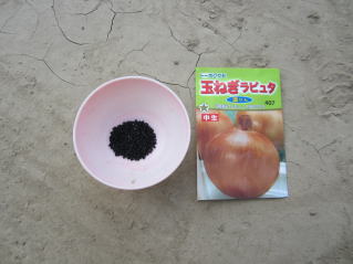 タマネギはホームセンターで苗として売っているようですがコスト高。おらホでは秋に種を蒔いて苗を作り、定植します。収穫は翌年6月頃です。