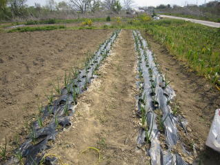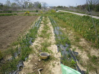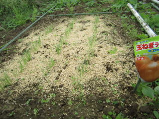芽が出たら顆粒状肥料、尿素を蒔いています。ネギ類は肥料を与えた分だけ大きくなるようです。