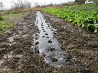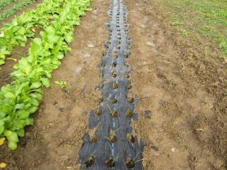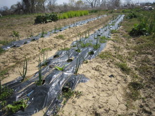Aマルチ(黒いビニール)を敷き、固定します。これをまた、数日間程度放置しておきます。