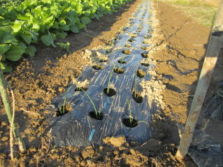 マルチ張りを終え1本ずつ定植。日も暮れ、疲れたので今日はこれまで。2020.11.13 15:16 気合を入れて全部完了。 2020.11.14 12:05