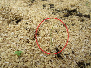 D土をかけてからその上に籾殻を籾殻を蒔きます。