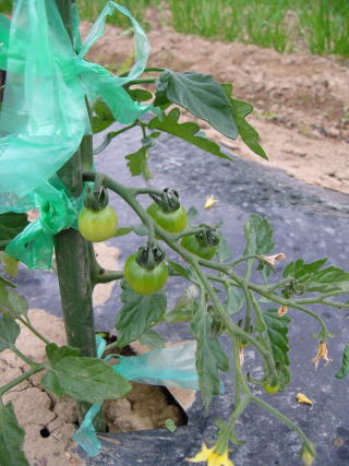 トマトはいわゆる大玉と中玉とミニトマトがあるが中玉、ミニは収量が大玉に比べ多く、栽培も比較的手がかからないように思われる。