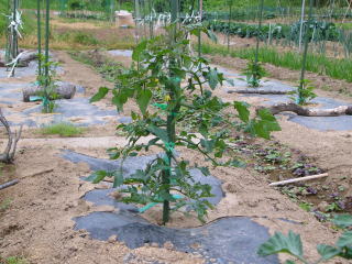 定植した手前2本が中玉トマト。色んな種類がありましたが名