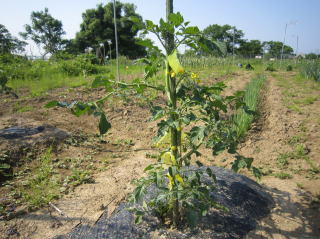 | トマトはいわゆる大玉と中玉とミニトマトがあるが中玉、ミニは収量が大玉に比べ多く、栽培も比較的手がかからないように思われる。 苗は1本100前後の安価なものを数本購入しています。洪水になると他の作物同様大きな打撃を受けるので、1本140〜150円もするような高価な苗木にコストをかけられません。 定植の準備 よく耕した地面に幅3〜4尺のマルチ(黒い農業用ビニール)を敷き、固定します。マルチの敷き方にはコツがありますが、おらホでは風のない早朝にしています。 定植時期 おらホでは4月末からホームセンター店頭にナス、キュウリ等ともに苗が並び始めます。これを買い求めて5月1日前後に定植しています。おらホでは数本で十分です。 定植の仕方 @1畝中約60センチ間隔となるように穴開け器で穴を開けていきます。 A@に水を注ぎます。 B苗ポットから苗を取り出し、Aに苗を入れ土で埋め固定します。 C風で倒れないように支柱(添え木)を当てます。(おらホでは周りにあるヨシを適当な長さに切って利用していますが、細めの市販のイボ竹を使ってもよいでしょう。) 手入れ 支柱 5月下旬頃、苗、葉っぱが濃い緑になって成長してきたら太めの市販イボ竹を支柱として立てます。 脇目掻き 幹と枝の境目に脇目が出てきますがこれを忘れずに除去します。これを怠るとお化けのような枝ばかりのトマトになってしましまいます。 これに関しては専門技術書、HPがありますで詳細はそちらを参考にしてください。 肥料 第1回目は5月下旬頃、後は適宜市販の顆粒状合成肥料をパラパラとかけ土を寄せています。(サクヅカゲ) 害虫対策 おらホではテントウムシが付くようです。幼虫を確認したら、市販の農薬で噴霧消毒します。8月になるとコオロギが食いつくようですが、「虫も食べるほど旨い」と諦めています。コオロギで被害を受けるのは1〜2割程度でしょうか。残りの収穫で十分です。 ポイント やはり、脇目掻きが重要です。 収穫 色づいたら収穫するようにしています。完熟まで待とうとすると虫のエサになります。 でも、中には虫にやられていない「完熟」があるんですね。これは最高です。 調理 生で食べています。 今年、トマトの素材を生かした料理にチャレンジしたいと思います。 収穫 6月中旬頃、初物をゲット出来ます。 調理 漬け物、茄子焼き等一般的な食べ方をしていますが、「ペソラヅケ」をマスターしました。 |