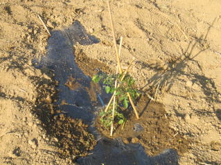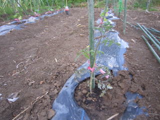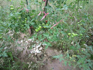 | トマトはいわゆる大玉と中玉とミニトマトがあるが中玉、ミニは収量が大玉に比べ多く、栽培も比較的手がかからないように思われる。 苗は1本100前後の安価なものを数本購入しています。洪水になると他の作物同様大きな打撃を受けるので、1本140〜150円もするような高価な苗木にコストをかけられません。 定植の準備 よく耕した地面に幅3〜4尺のマルチ(黒い農業用ビニール)を敷き、固定します。マルチの敷き方にはコツがありますが、おらホでは風のない早朝にしています。 定植時期 おらホでは4月末からホームセンター店頭にナス、キュウリ等ともに苗が並び始めます。これを買い求めて5月1日前後に定植しています。おらホでは数本で十分です。 定植の仕方 @1畝中約60センチ間隔となるように穴開け器で穴を開けていきます。 A@に水を注ぎます。 B苗ポットから苗を取り出し、Aに苗を入れ土で埋め固定します。 C風で倒れないように支柱(添え木)を当てます。(おらホでは周りにあるヨシを適当な長さに切って利用していますが、細めの市販のイボ竹を使ってもよいでしょう。) 手入れ 支柱 5月下旬頃、苗、葉っぱが濃い緑になって成長してきたら太めの市販イボ竹を支柱として立てます。 脇目掻き 幹と枝の境目に脇目が出てきますがこれを忘れずに除去します。これを怠るとお化けのような枝ばかりのトマトになってしましまいます。 これに関しては専門技術書、HPがありますで詳細はそちらを参考にしてください。 肥料 第1回目は5月下旬頃、後は適宜市販の顆粒状合成肥料をパラパラとかけ土を寄せています。(サクヅカゲ) 害虫対策 おらホではテントウムシが付くようです。幼虫を確認したら、市販の農薬で噴霧消毒します。8月になるとコオロギが食いつくようですが、「虫も食べるほど旨い」と諦めています。コオロギで被害を受けるのは1〜2割程度でしょうか。残りの収穫で十分です。 ポイント やはり、脇目掻きが重要です。 収穫 色づいたら収穫するようにしています。完熟まで待とうとすると虫のエサになります。 でも、中には虫にやられていない「完熟」があるんですね。これは最高です。 調理 生で食べています。 今年、トマトの素材を生かした料理にチャレンジしたいと思います。 収穫 6月中旬頃、初物をゲット出来ます。 調理 漬け物、茄子焼き等一般的な食べ方をしていますが、「ペソラヅケ」をマスターしました。 |