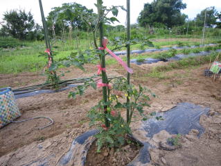 | 芽欠きし、ビニルテープで固定。ミニトマト2024.05.31 10:02 | ミニトマト結実。2024.06.06 18:59 | ||||||||||||||||||||||||||