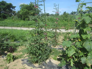 おらホでは4月末からホームセンター店頭にナス、キュウリ等ともに苗が並び始めます。これを買い求めて5月1日前後に定植しています。おらホでは数本で十分です。