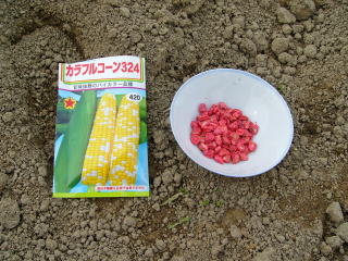 B種類の異なる種を同一箇所に蒔かないこと。スイートコーンとかハニーバンタム(何れも商品名?)を一緒にまかないようにと種袋の裏に書いてあり、技術書にも書いてありました。私もこれを守っています。
