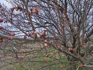 ウメのツボミが膨らんできました。開花間近なようです。