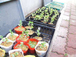 農業技術書によれば苗定植はもう少し大きくなってからとのことであるが、狭いポットでは窮屈と思えてならない。おらホは写真くらいの大きさになってから植えています。今度の土日に定植しようと思っています。