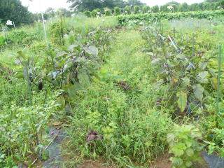 ナス畑に雑草が蔓延っています。