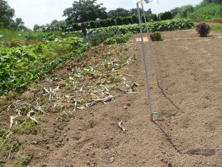 トウモロコシは細かく砕いて混ぜて耕耘し、土に返して昔から肥料にされてきたという。おらホもこれを実践とばかり、スコップで掘り起こして10センチ位ずつ切り、耕耘した。これでトウモロコシは堆肥となって土壌を活性化するはずだ。(と、TV番組で報道していました。)この場所で白かぶを栽培する予定です。