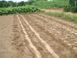 種まきにも同じ事が言える。大雨が降って種が流れないように籾殻を蒔いているが、以外にこれが発芽に効果あるようだ。