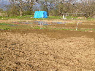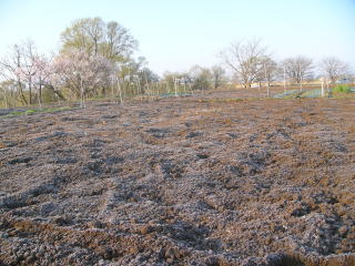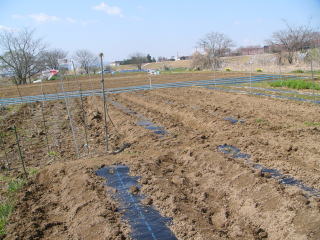 1週間ほど放置して土中の温度を上げておかなければならない。こうすることで根付け、芽出しを完全にするのである。マルチ張りは