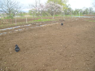 黒い物体はカラス?いえいえ、これは黒マルチを利用した疑似