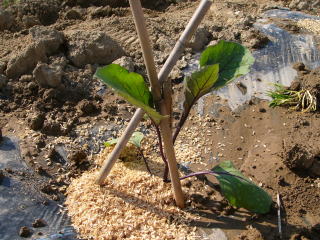 ナス、定植終わりました。活き付くまで水を与えなければ