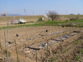 苗定植完了。そしてトウモロコシ、ささぎ、ニンジン、ゴボウ種まき完了。