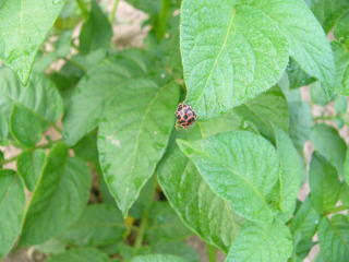 早朝の下見報告 ジャガイモをかじるテントウムシ