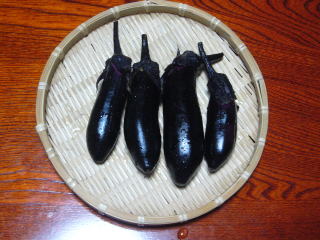 初収穫のナス。 2010.06.20 9:14 撮影