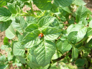 野菜の守護神、ナナホシテントウ虫。(と思われます。)土寄