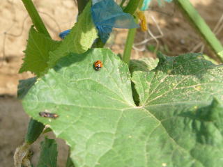 キュウリにもナナホシテントウ虫がついていました。彼等の