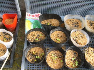 20日ポット種まきした白菜の発芽を確認した。3日で発芽したことになる。これを間引きしながら定植することになる。