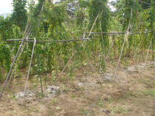 ここはアカザが我が物顔に蔓延っていたところ。今回念願か なって雑草除去しました。ナガイモの根元が白く見えるのは 顆粒状肥料です。 2010.09.11 9:24 撮影