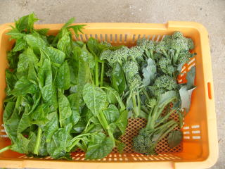 今日の収穫。左ツルムラサキ、右、ブロッコリーです。 収穫野菜も秋っぽくなってきました。 2010.09.11 9:27 撮影