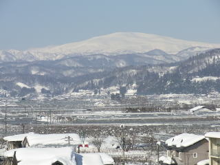 久方ぶりの月山です。手前民家の屋根の積雪は60センチ