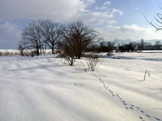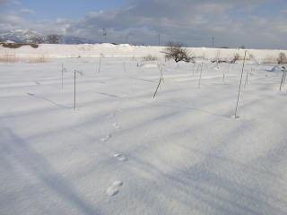 最上川早春。おらホの家庭菜園、雪で覆われていますがあと