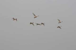 空を見上げると白鳥の小グループが飛んでいった。近くの田圃まで飛んでいき、落ち穂でも啄むのだろう。