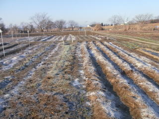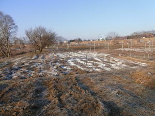 写真中央部は昨年、ジャガイモ、大根を植えた所。今年はナガ