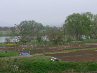 木々が青くなってきました。おらホの家庭菜園は写真中央部 農道から上の部分です。ニラ収穫です。焼き肉の野菜としてい ただきました。 2011.05.11 5:53 撮影