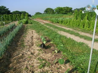 朝の収穫です。ナスはぺそら漬け、キュウリは置き漬けに しました。 2011.07.14. 6:28 撮影
