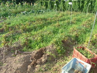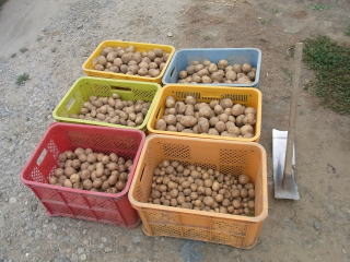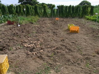 掘った芋はしばし天日干しです。2011.07.23 14:48 撮影