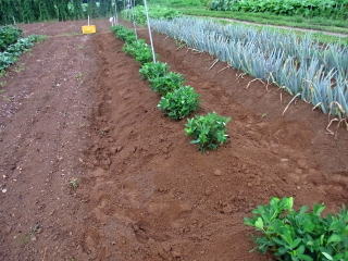 土をかけるのだと教えられ、このタイミングとばかり土寄せをした。周りの土を耕耘して柔らかくしておいたのは正解である。
