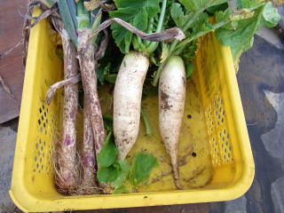 夏大根とネギのお試し収穫です。というか、最近は食べる分だけ