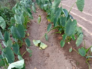 一雨欲しいおらホの家庭菜園、里芋の水掛け
