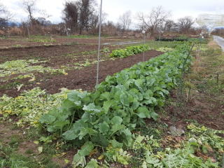 越冬野菜の状況。一冬雪の下になって来春収穫とする。