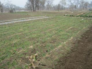 おらホの家庭菜園、雪が完全になくなった。雑草取りが待っている。まずはニンニク、そしてタマネギ。