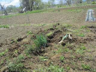 | 気がかりだったタマネギ、タマネギの雑草取り取り完了。サヤエンドウの支柱立も完了。 ジャガイモ耕耘のために春ゴボウを収穫。 農作業には充実した二日間であった。 |