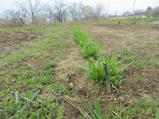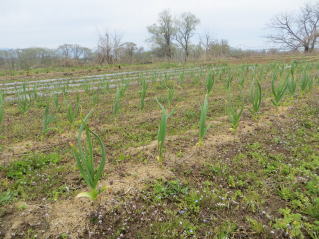 | 雑草取り、追肥を待つタマネギ。2026.04.04 10:20 | 雑草取り、追肥を待つニンニク。2026.04.04 10:20 |