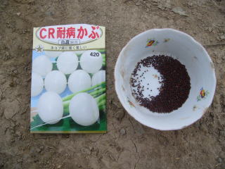 基本的には夏かぶと同じ蒔き方をする。異なるのはゴマ虫(おらホの呼称)対策のため顆粒状殺虫剤を蒔くことだ。