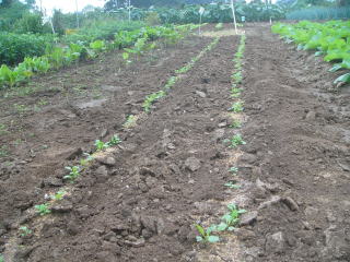 種が小さいので厚く蒔きがちとなります。こうした場合、間引きが絶対必要です。間引きにより個体を大きくします。