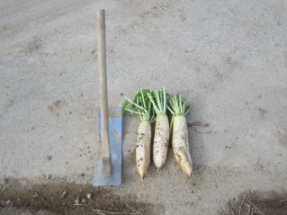 大根は秋11月に収穫します。このころになると太さ7〜8センチ、長さ50センチ程度に成長しています。