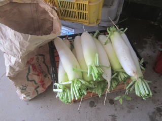 | 自家用たくあん漬け用に収穫。水洗いした。10間日程度干して漬け込む。2022.11.23 14:09 |