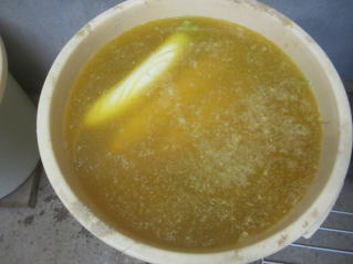 | タクアン付け。お試しに食したところ、ちょうどよい塩辛さであった。2022.12.10 17:00 |